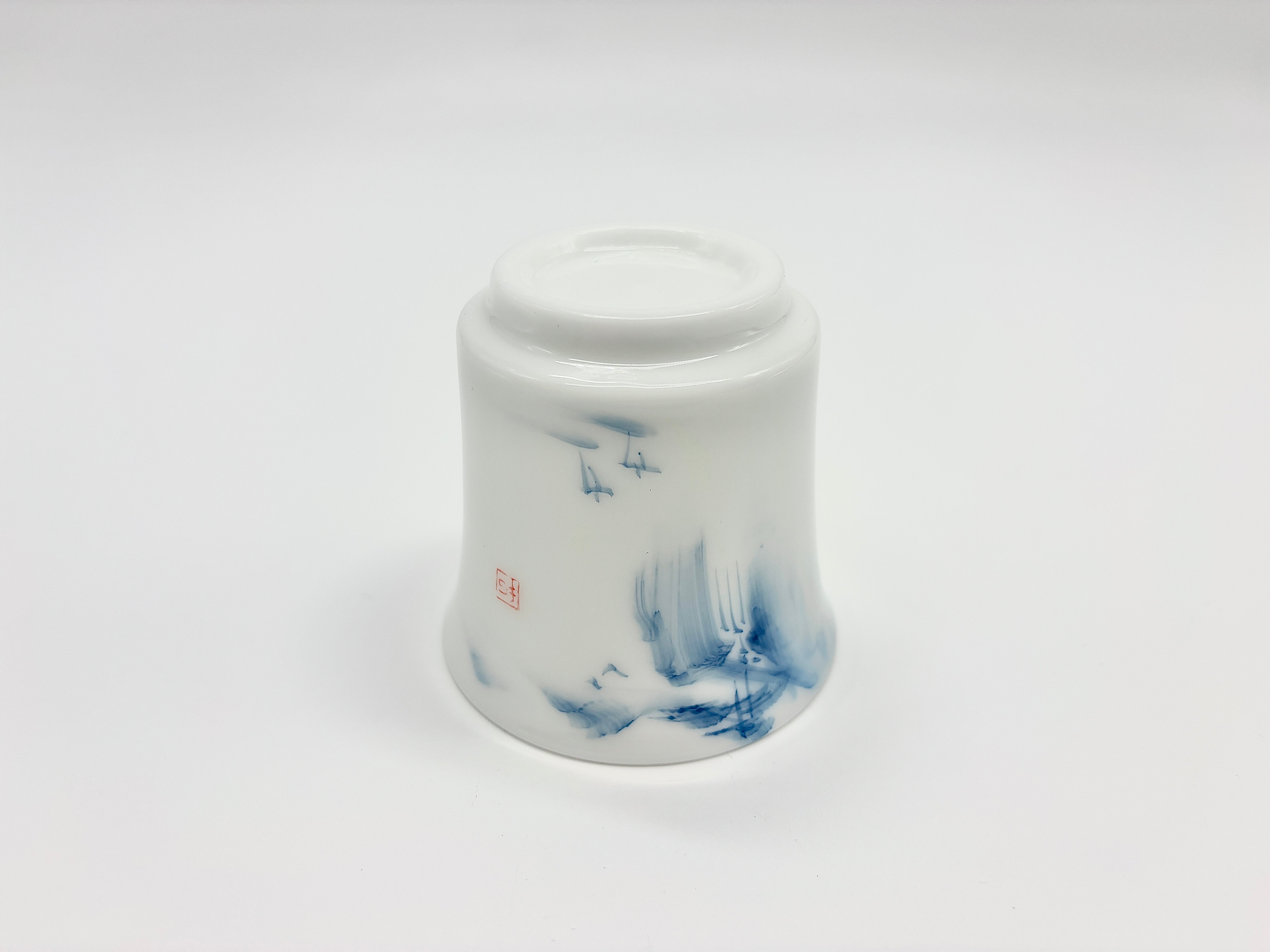 This hand-painted landscape teacup in Ice and Snow White is made with high-quality white porcelain, fired at high temperatures using an ice crystal process. The porcelain is delicate and translucent, with a glaze as pure and white as ice and snow, clear and soft. The body of the cup is decorated with a hand-painted landscape, with distant mountains and nearby waters clearly defined, the brushstrokes flowing and natural, creating a serene and distant atmosphere. The ice crystal glaze further enhances its ethereal elegance. The teacup has a dignified and stable shape, a moderate capacity, and a comfortable grip, making it an ideal choice for quiet tea appreciation.