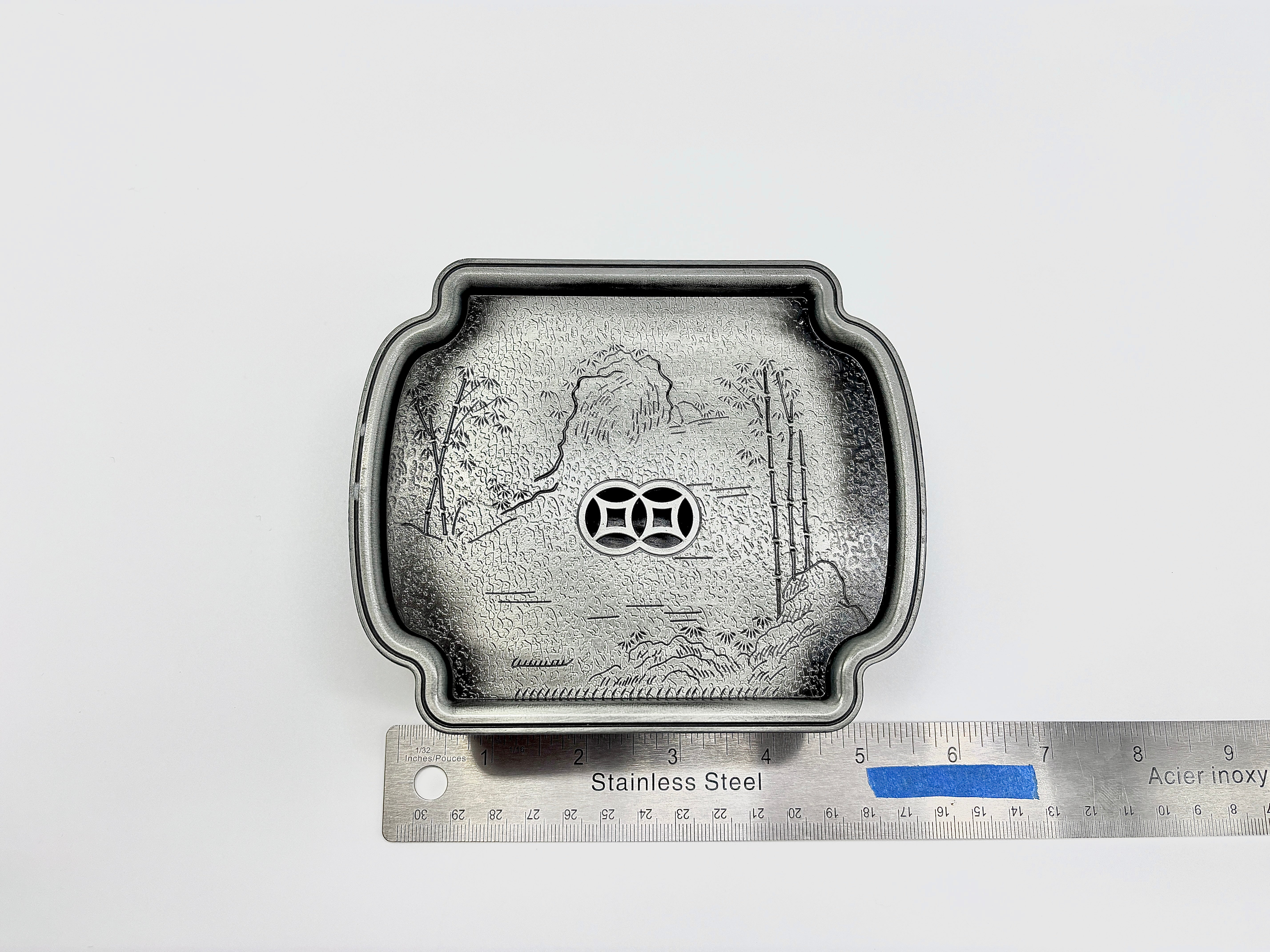 This alloy landscape teapot stand is designed with the theme of mountains and rivers, integrating the magnificent beauty of nature into the tea ceremony. It is both practical and artistic, making it an elegant object that enhances the overall atmosphere of the tea ceremony.