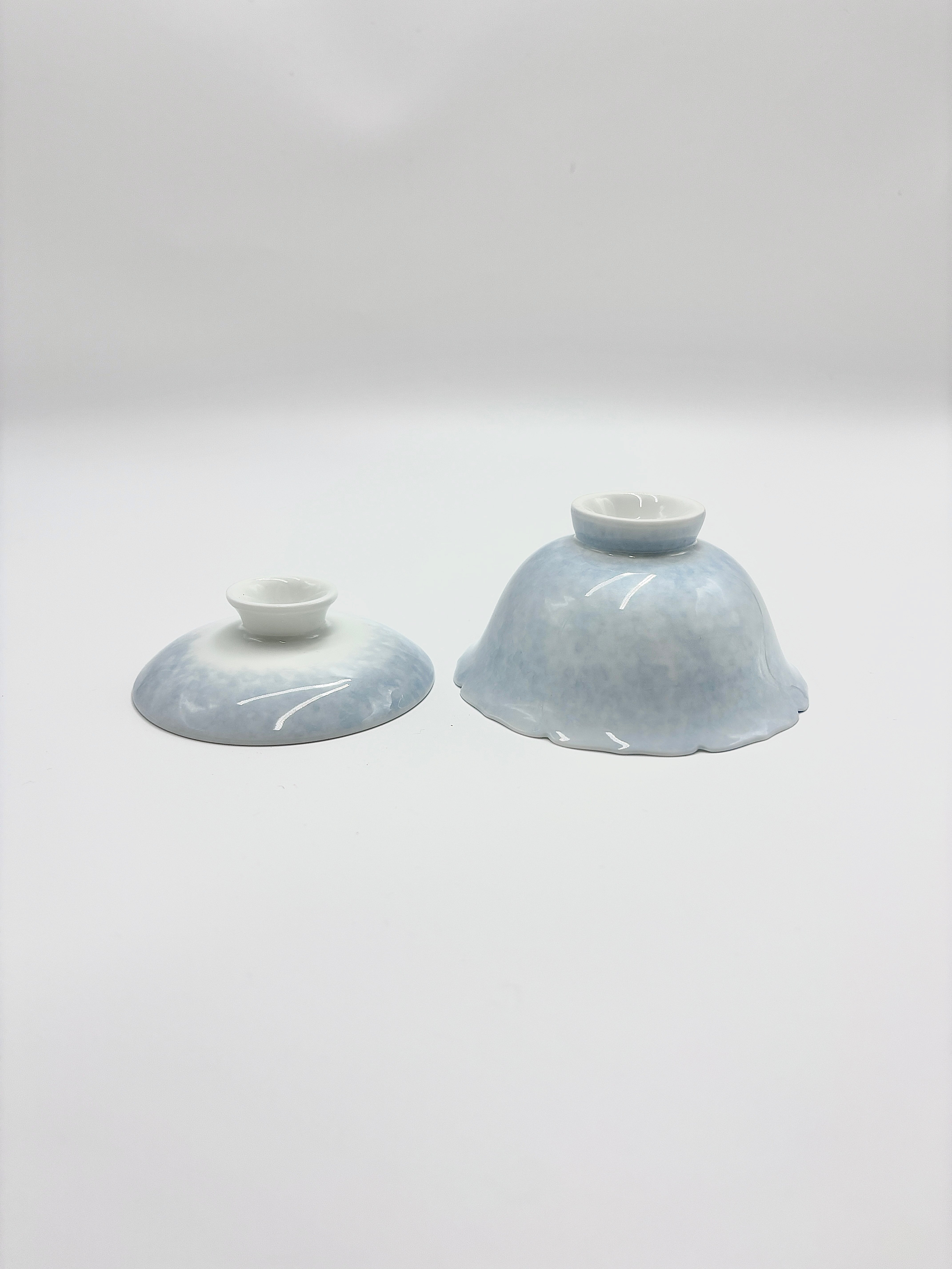 This hand-painted blue lily-shaped diamond-shaped gaiwan is handmade and features an elegant and unique design. The bowl features a diamond-shaped rim with clean, flowing lines, and the extra-large rim is designed to resist burns and provide a comfortable feel. The gaiwan is crafted entirely of blue, with naturally graduated shades of blue. The delicate and vivid hand-painted lily pattern adds an artistic touch. The overall design embodies a unique blend of simplicity and elegance, making it practical and collectible.