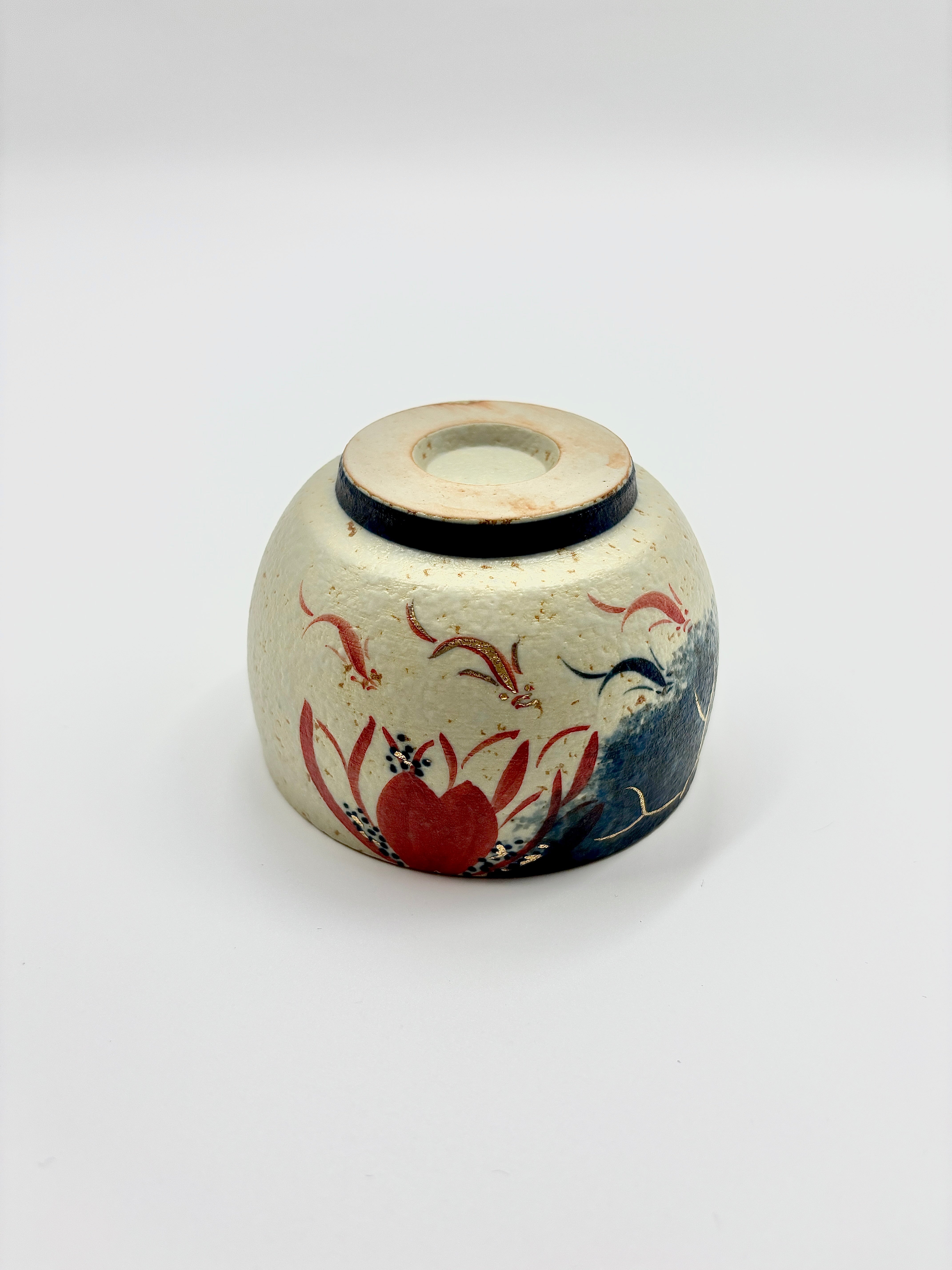 Blue and white flint and gold-painted lotus-style Arhat cup